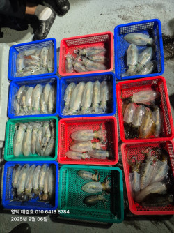 ***2025년 9월05일 무늬오징어 ***오늘은 너울이 좀있어서 불편한감은 있었지만수온이 많이 올라와 활성도가 좋아서 선내 70수 나왔네요이제부터 무늬오징어 시즌 끝날때까지 진행하겠습니다예약창 열려 있으니 함께시작해보아요~~오늘 오신분들 늦은시간까지 모두 고생하셨습니다안전운전하셔서 귀가하세요~^^***태경호를 찾아주셔서 항상 감사합니다****☆9월 오징어.가자미&도다리 일정표☆ ****출조 시간 *******무늬오징어: 저녁 출항 19:00~입항 01:00 (6시간) { 일요일~목요일}***무늬오징어: 저녁 출항 18:00~24:00 (6시간)